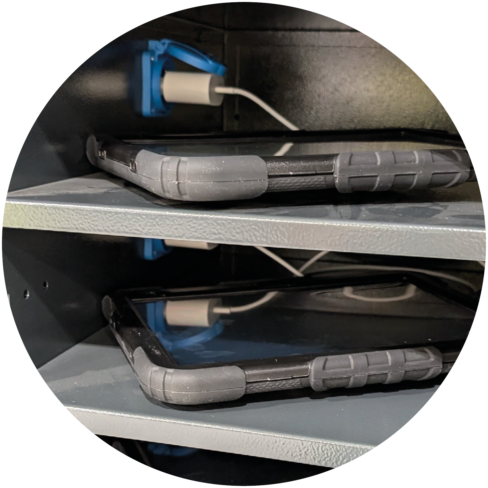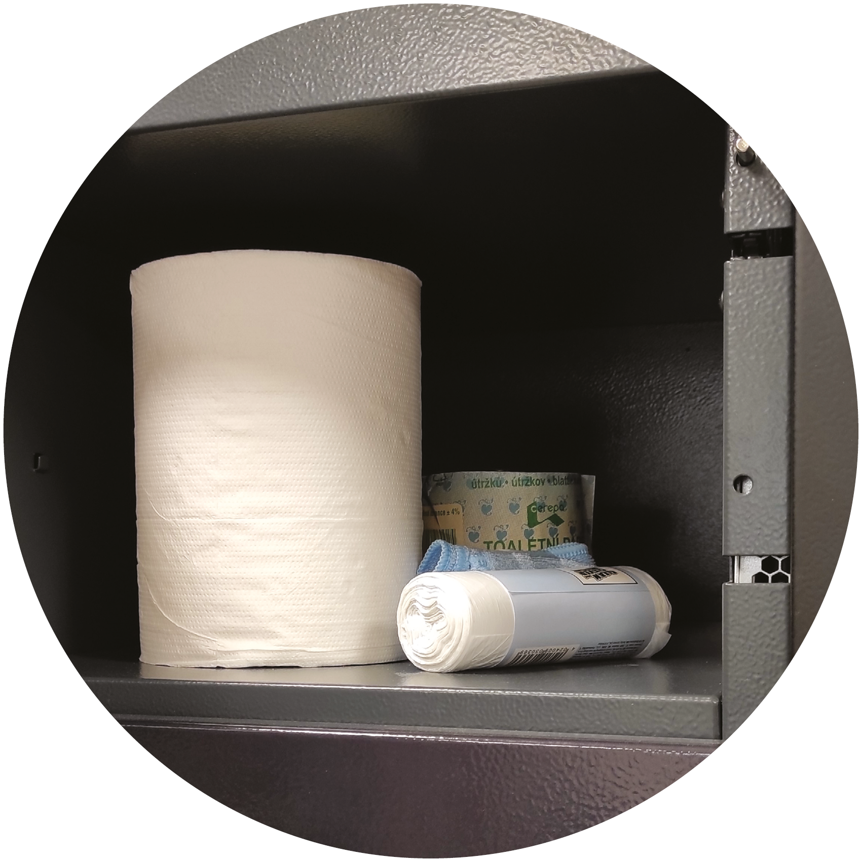 jednotlivé buňky lze na přání vybavit zásuvkami na 230V pro dobíjení AKU nářadí, tabletů, čteček apod.